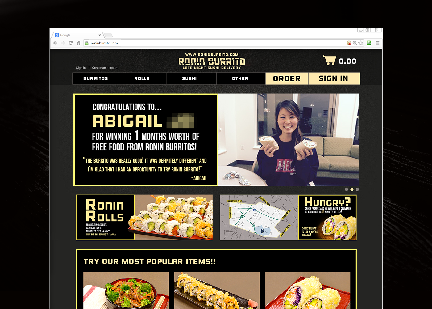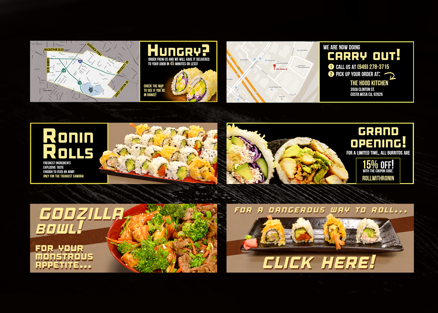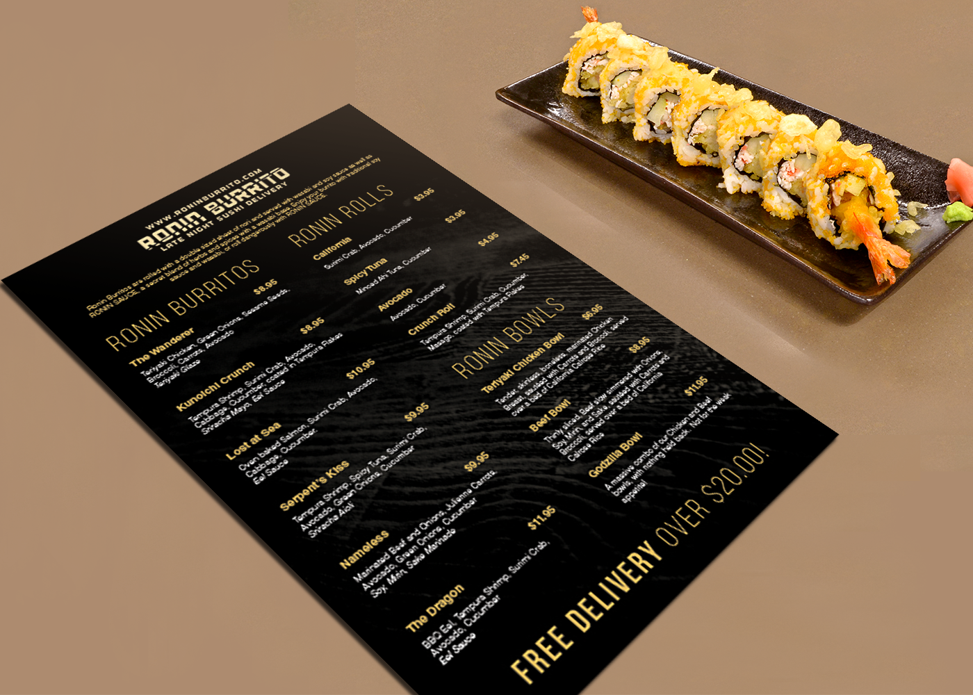 Ronin Sushi was one of the first businesses of it's kind in the Costa Mesa area. They focused on sushi delivery to locals, primarily university students, during the evenings.